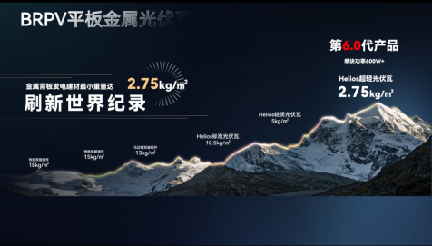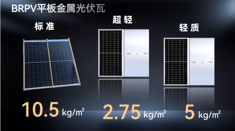 超轻BIPV平板金属光伏瓦,重量低至2.75kg/㎡,突破传统光伏组件重量限制,新型轻钢结构建筑一体化应用。